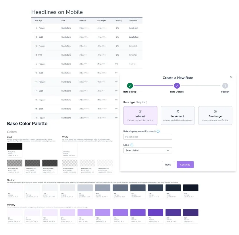 The Design System Solution: During a two-week onboarding period, I focused on finalizing and delivering a comprehensive design system using a base system, overcoming the previous designer's departure and tight deadlines.