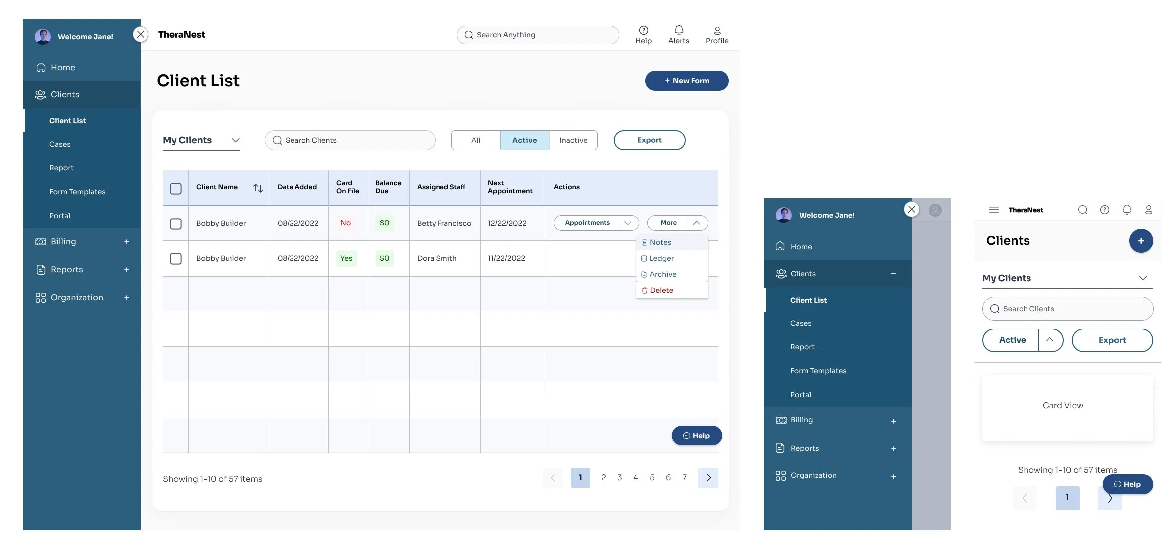 Redesign TheraNest’s Global Navigation. Therapy Brands needed a responsive, intuitive, and scalable solution for individuals and group practices, ensuring current users could quickly adapt to the updated experience.